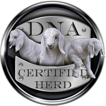 We register through Pedigree International Savanna goat breed registry. Our herd is a DNA certified herd meaning all of our registered goats are parental verified through DNA testing. Our herd has been blood tested and is negative for the goat diseases CAE, CL and Johne's. All of our registered goats are microchipped.